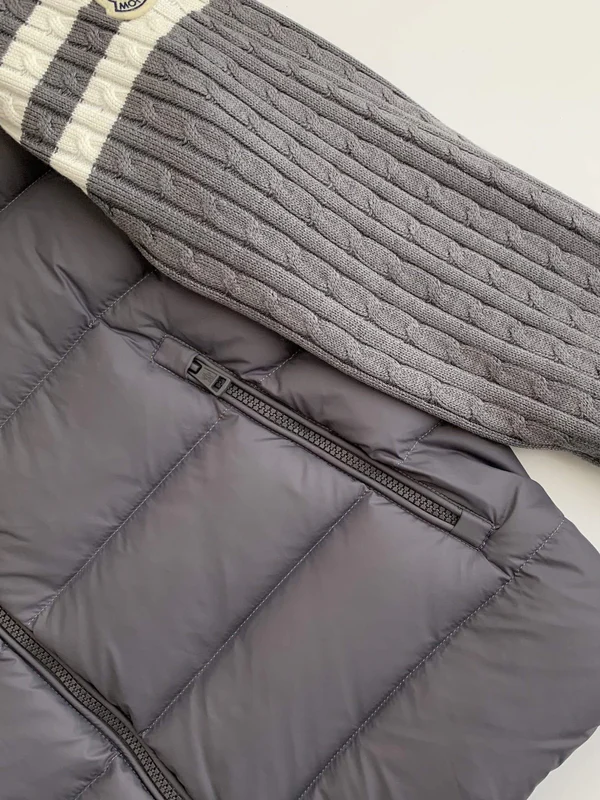 「モンクレールのスタイルを感じさせるアイテム、ブラックとダークグレーのパデッドウールジップアップカーディガンをお届けします。この多用途なカーディガンは、キルティングのダウン入りボディとソフトなウールスリーブを組み合わせ、優れた保温性と動きやすさを実現しています。クラシックなブラックと洗練されたダークグレーのカラーは、白と黒のストライプがアクセントになったインナー襟と、大胆なロゴパッチによってスポーティな洗練さをプラスしています。冒険を求める時も、日常の快適さを求める時も、このカーディガンは寒い季節の理想的なパートナーです。